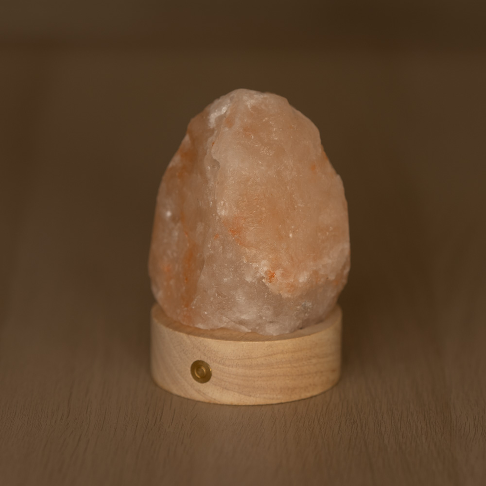 La base rotonda in legno garantisce stabilità e dona un contrasto caldo alla struttura minerale, rendendola perfetta come lampada decorativa per camera da letto, luce d’atmosfera per il soggiorno o elemento rilassante per studio e zona relax. Compatta, leggera e maneggevole, può essere posizionata facilmente ovunque senza ingombri.