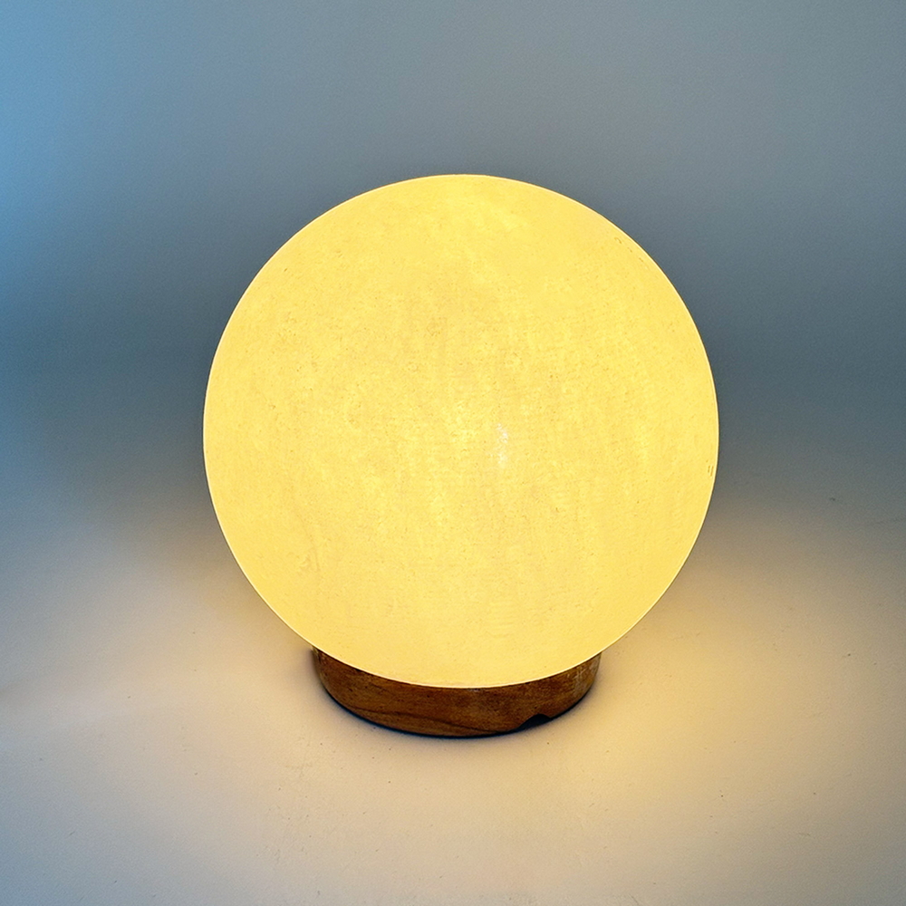 Ogni esemplare è unico nelle sue venature naturali; la sfera racchiude un mondo di riflessi individuali. Montata su una base in legno stabile, combina eleganza, semplicità e funzionalità sensoriale. Ottima sia per chi é in cerca di un oggetto che unisca design ed efficacia ambientale. Una sfera di luce che purifica, arreda e invita alla contemplazione con grazia luminosa.