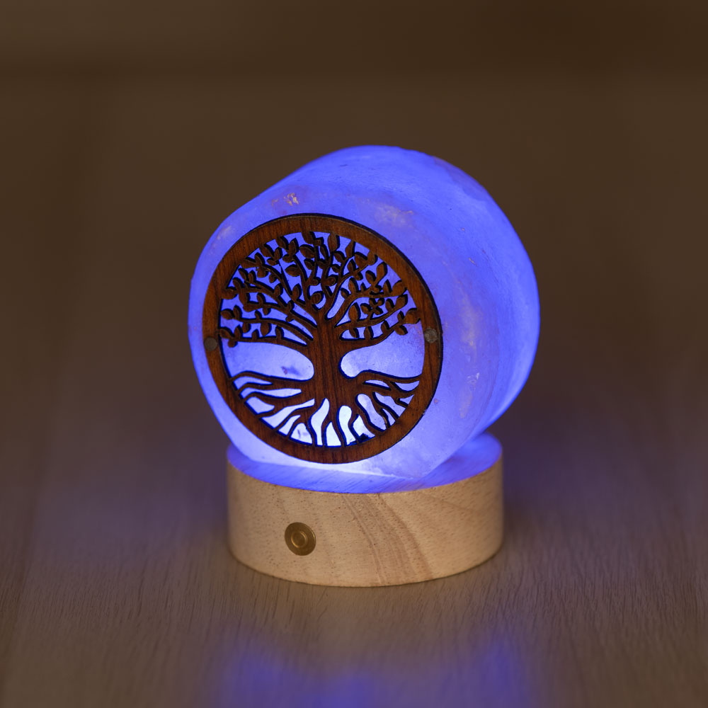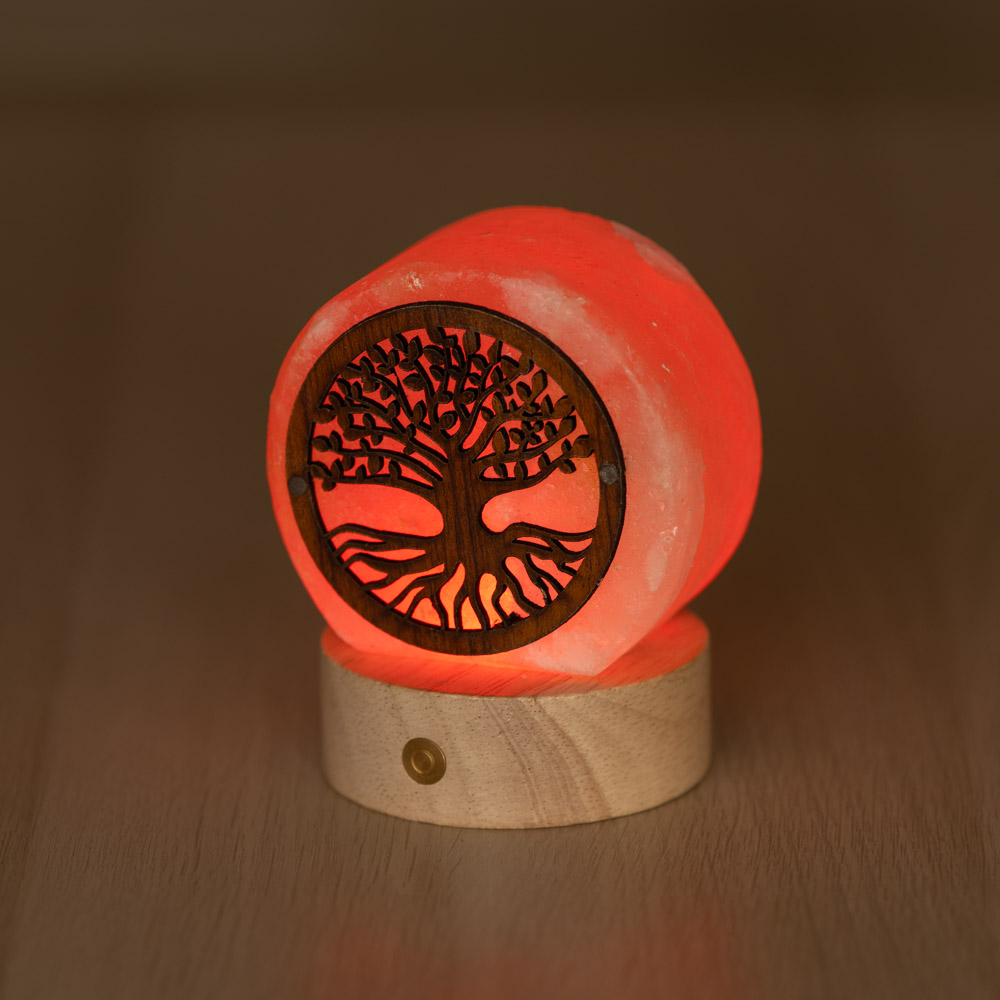 Elegante, simbolica e naturale: questa Lampada di Sale Himalayano tonda da 650-750 g combina la bellezza della pietra grezza con il fascino di una lastra di legno intagliata, decorata con l’incantevole disegno dell’Albero della Vita. Ogni pezzo è unico, con venature e sfumature proprie del sale himalayano, rendendo questa lampada un elemento decorativo originale e raffinato per ogni ambiente.