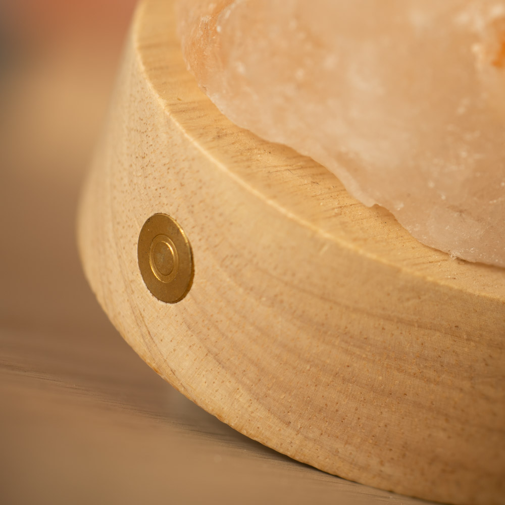 La base in legno, oltre a stabilizzare la struttura, valorizza l’intaglio e il contrasto tra materia naturale e design, rendendola perfetta come lampada da comodino, luce d’atmosfera per soggiorno o studio, o complemento decorativo per angoli relax. Il formato tondo e il peso di 650-750 grammi la rendono stabile, compatta e facilmente posizionabile ovunque senza ingombri.