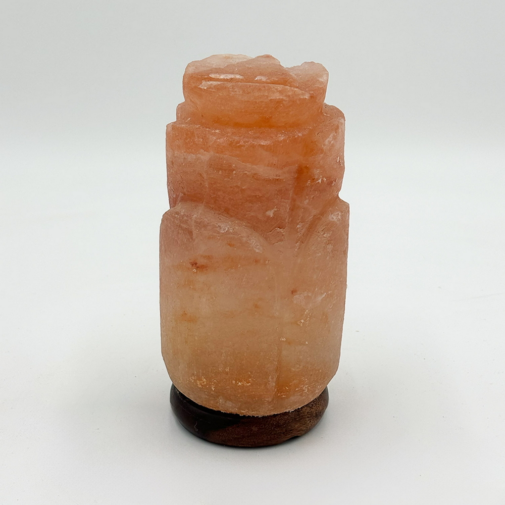 Un simbolo di rinascita e delicatezza scolpito nella luce naturale: questa lampada a forma di rosa a bocciolo, realizzata a mano da blocchi autentici di sale rosa dell’Himalaya e dal peso di circa 3-4 kg, cattura l’immaginazione e dona armonia all’ambiente.